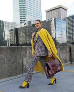 A diferencia del Amarillo , el Gris si que es un color que forma parte de la mayoría de nuestros roperos. Un traje completo se interpreta como seriedad, estabilidad  y confianza y ha sido nuestro aliado en muchas ocasiones para un acertado look laboral. Pues esta elegancia del Gris combinada con el atrevido Amarillo da  como resultado una explosiva  imagen.
